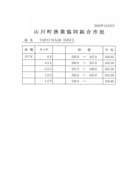 12/9㈫入札済み! 12/11㈭~水揚終了しました!