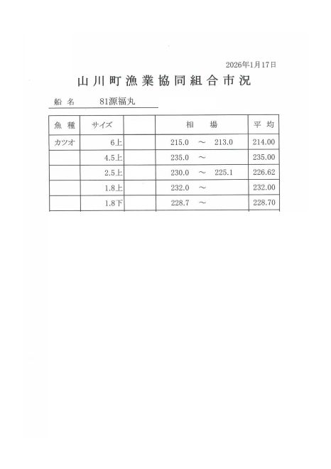 1/17㈯入札済み! 1/19㈪~水揚終了しました!