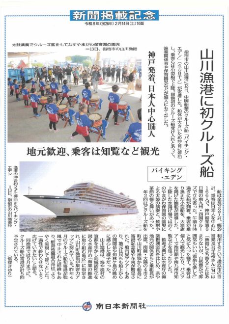 HOME 漁協からのお知らせ 2/13㈮クルーズ船バイキング・エデン山川漁港 初寄港!! 2/13㈮クルーズ船バイキング・エデン山川漁港 初寄港!! 2月13日㈮バイキング・クルーズ社のクルーズ船バイキング・エデン(48,000トン 全長227m)が山川漁港へ初寄港することになりました。船体が大きいため沖合に停泊、乗客は小型艇に乗り換えて上陸しバスツアーなど南薩地域の観光地を巡ります。 一覧に戻る