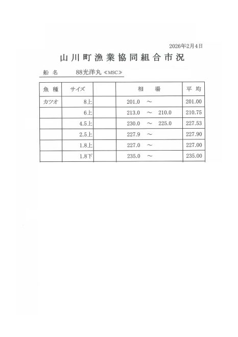 2/4㈬入札済み! 2/6㈮~水揚終了しました!