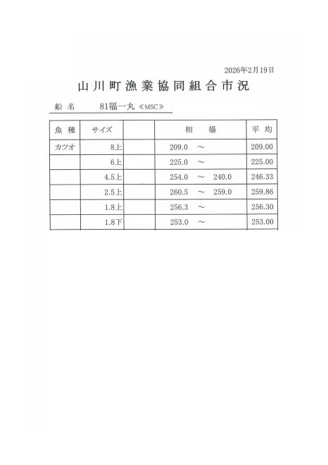 2/19㈭入札済み! 2/20㈮~水揚終了しました!